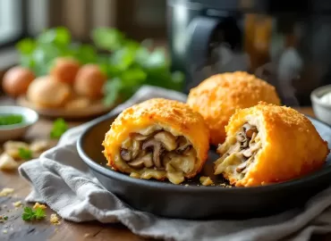 To niewielkie krążki z gotowego ciasta francuskiego wypełnione sosem pomidorowym, serem i dodatkami, pieczone w koszu frytkownicy na gorące powietrze. Zamiast tradycyjnego pieca wystarczy urządzenie typu air fryer, które dzięki obiegowi gorącego powietrza daje szybkie i równe zarumienienie, a jednocześnie zachowuje lekkości ciasta francuskiego. Dzięki gotowemu ciastu przygotowanie jest ekspresowe — od rozwałkowania do stołu zazwyczaj nie minie więcej niż 20–25 minut.